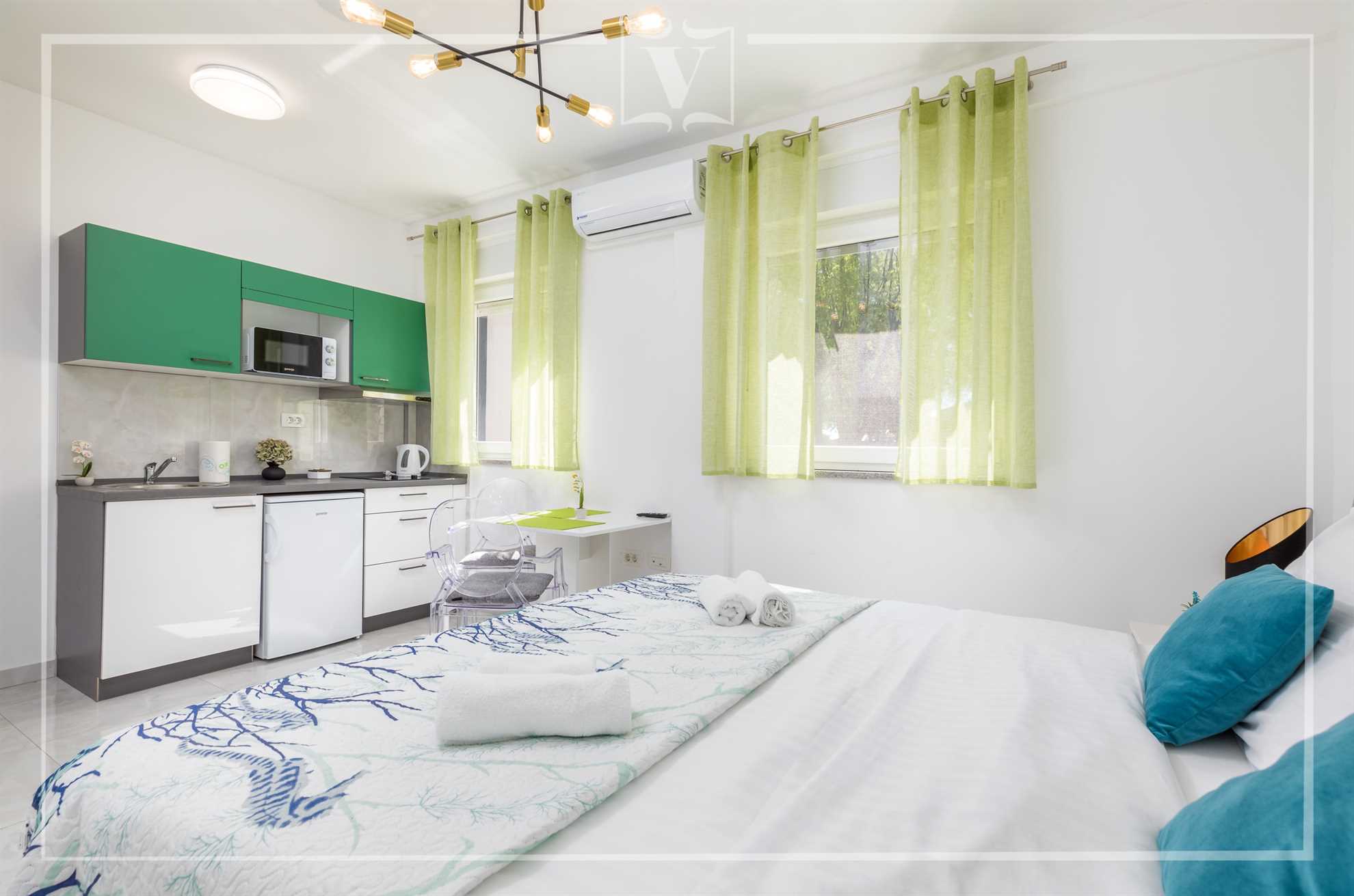 Modern, luxuriously equipped aparthotel in a quiet part of the center of Pula, fully adapted to the needs of business people. Surrounded by greenery, by the sea, and designer-designed apartments, equipped with luxury furniture, will help you relax after a hard trip and prepare perfectly before business meetings. Breakfast based on local, local Istrian delicacies that come directly from our restaurants will awaken your senses, and you will truly enjoy every bite. The exclusive offer of local Istrian wines, brandies and juices in the beautiful, pleasant and peaceful ambience of our Lounge bar and terrace will help you relax after hard business activities. You should definitely not miss a walk along the promenade in front of the hotel by the sea, which reveals the charms and secrets of Roman Pula. The entire content of the aparthotel is designed to provide its guests with excellent conditions for achieving new business successes, but also unforgettable unique moments in the ancient city over 3000 years old and where you can feel the experience of ancient Rome.